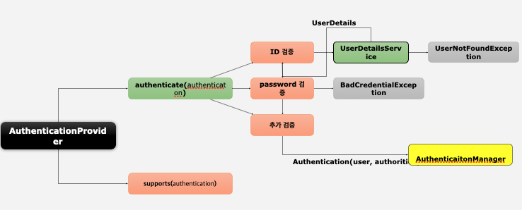 AuthenticationProvider는 인터페이스다. 이 인터페이스를 구현하면 커스텀 AuthenticationProvider도 만들 수 있다.